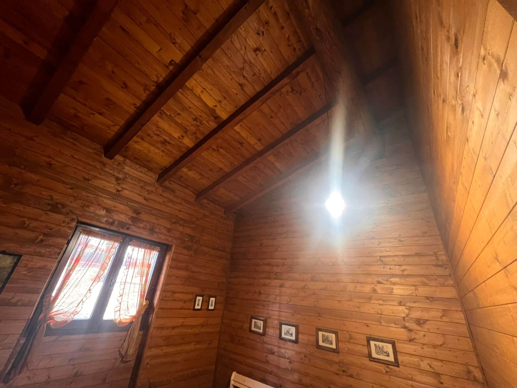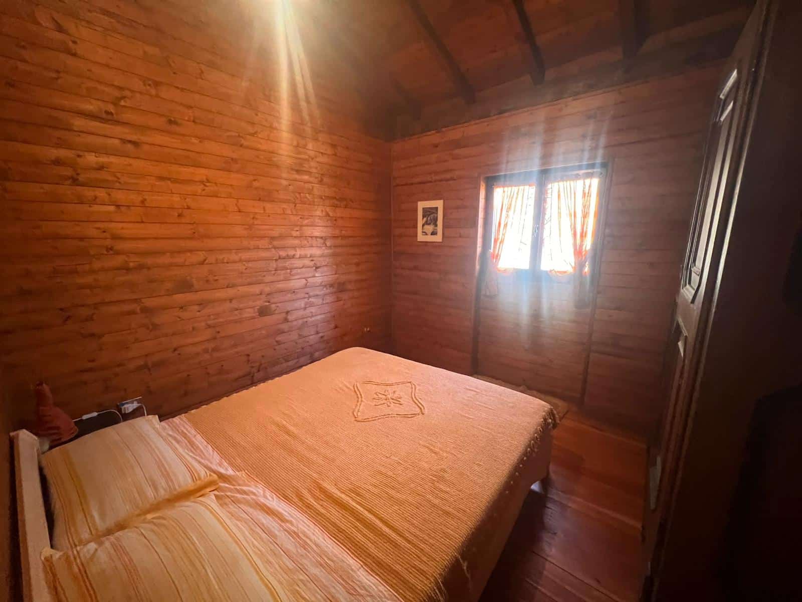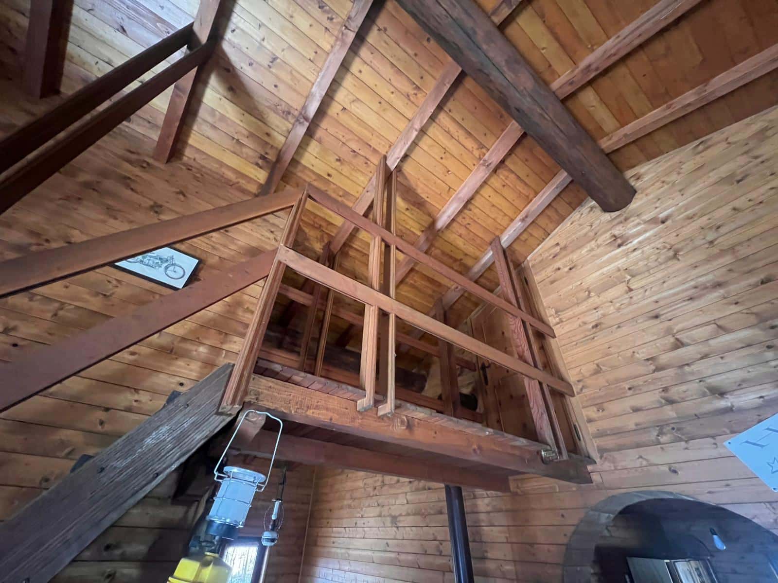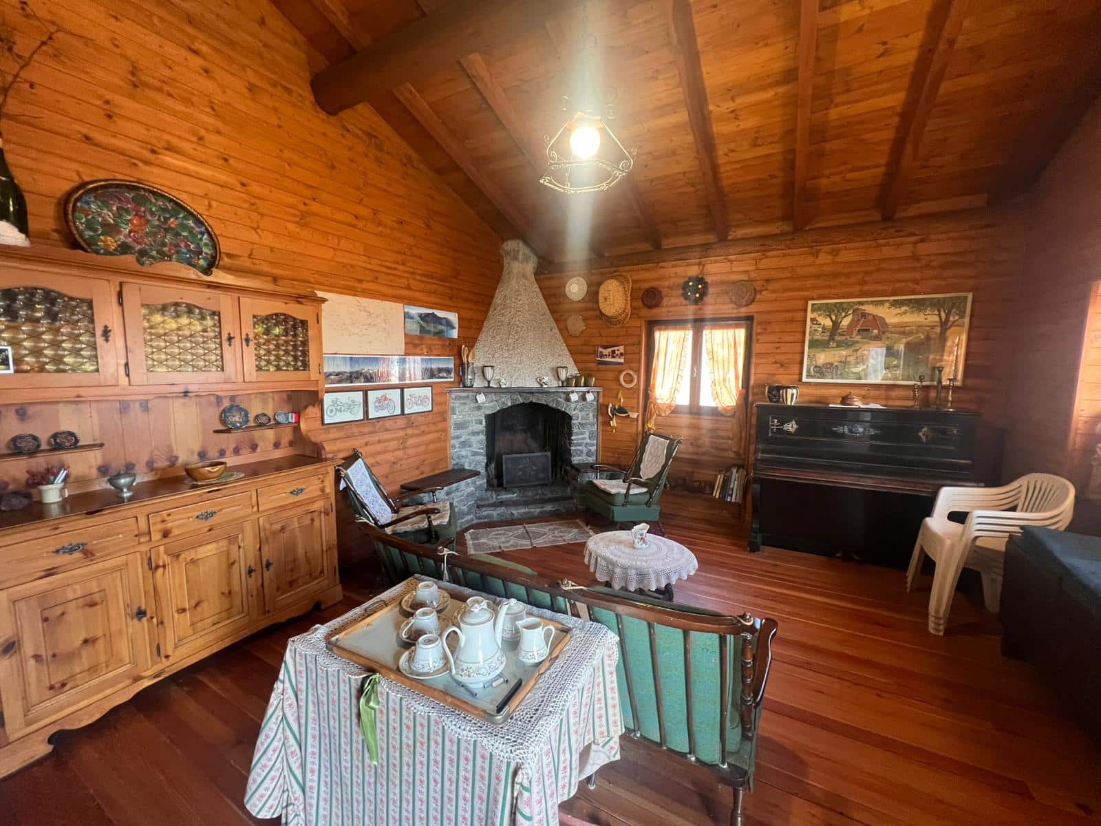 De ruime woonkamer met open haard van natuursteen en houten balkenplafond is het kloppende hart van het huis. Aangrenzend zijn meerdere slaapkamers, een keuken en een badkamer met bad en bidet. Vanuit de woonkamer met open haard is er directe toegang tot het overdekte terras met eettafel en ligstoelen om perfect te genieten van het panorama. Op de verdieping bevinden zich extra slaapkamers onder een authentiek houten dakgebinte, en een balkon met uitzicht over de bergen.
