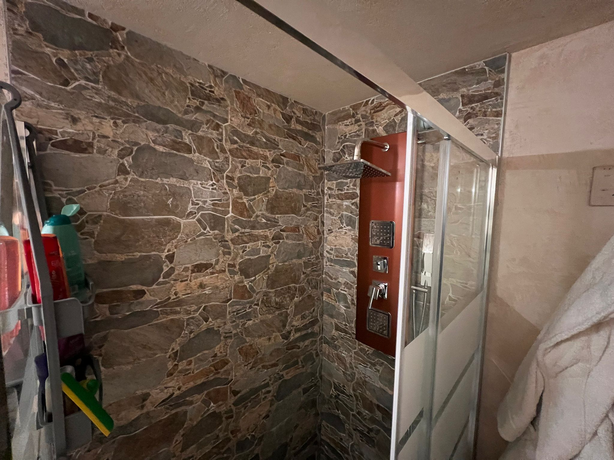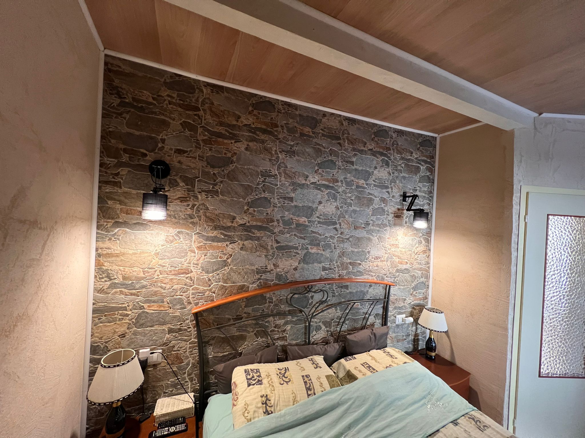 Het vakantiehuis beschikt over drie comfortabele slaapkamers, een moderne badkamer met luxe douche en voldoende kastruimte. De mix van natuurlijke materialen zoals steen en hout geven het interieur een huiselijke en knusse uitstraling.
