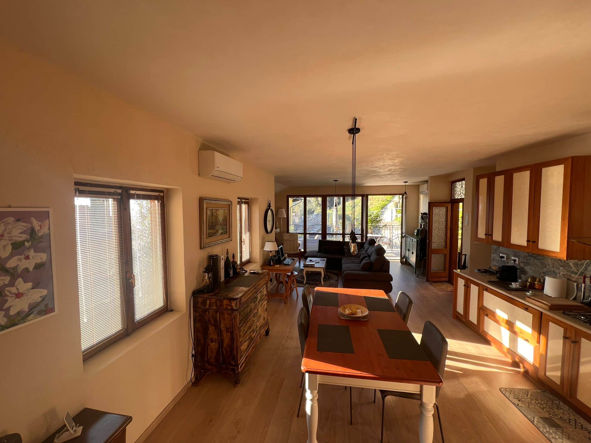 Buiten kun je heerlijk ontspannen op het ruime terras met zithoek, eettafel en als kers op de taart een zwembad! Geniet van een adembenemend uitzicht over het meer en de omliggende bergen. Perfect voor een ontbijt in de ochtendzon of een glas wijn bij zonsondergang.